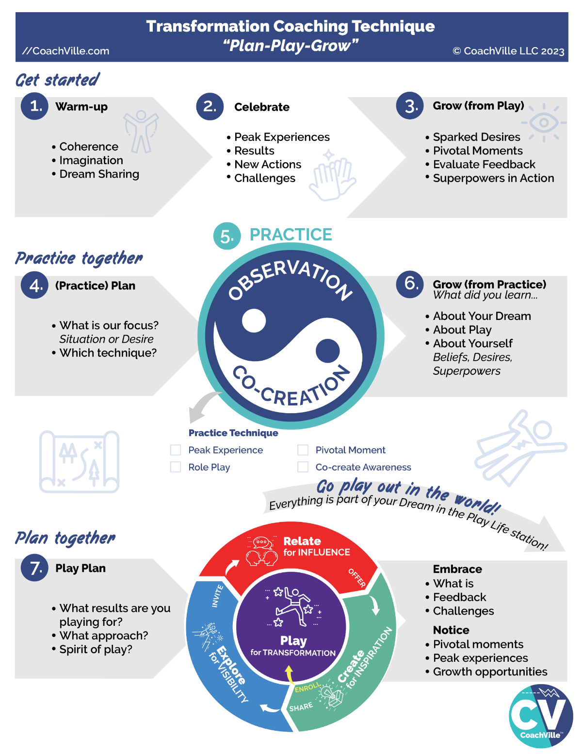 The Spirit of Play and Play language set coaching apart from every other approach to Human Achievement. When you focus your sessions on playing big for a dream with SKILLS practice, you will never be confused with another type of professional. If your aim is to become a Professional Transformation Coach, this is essential for you.